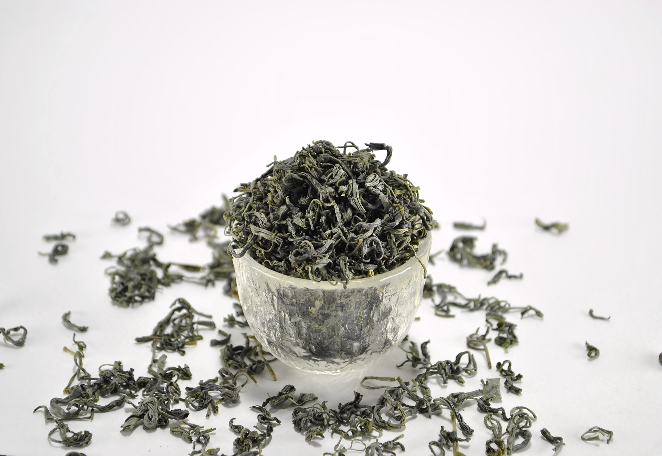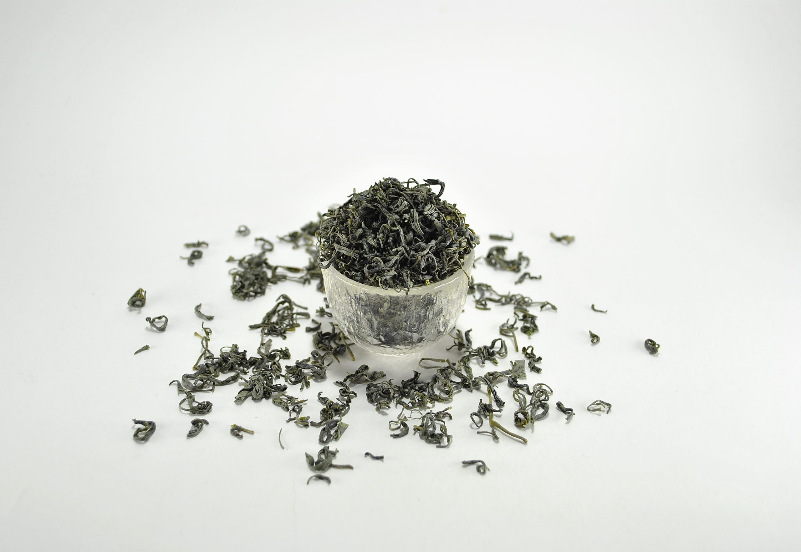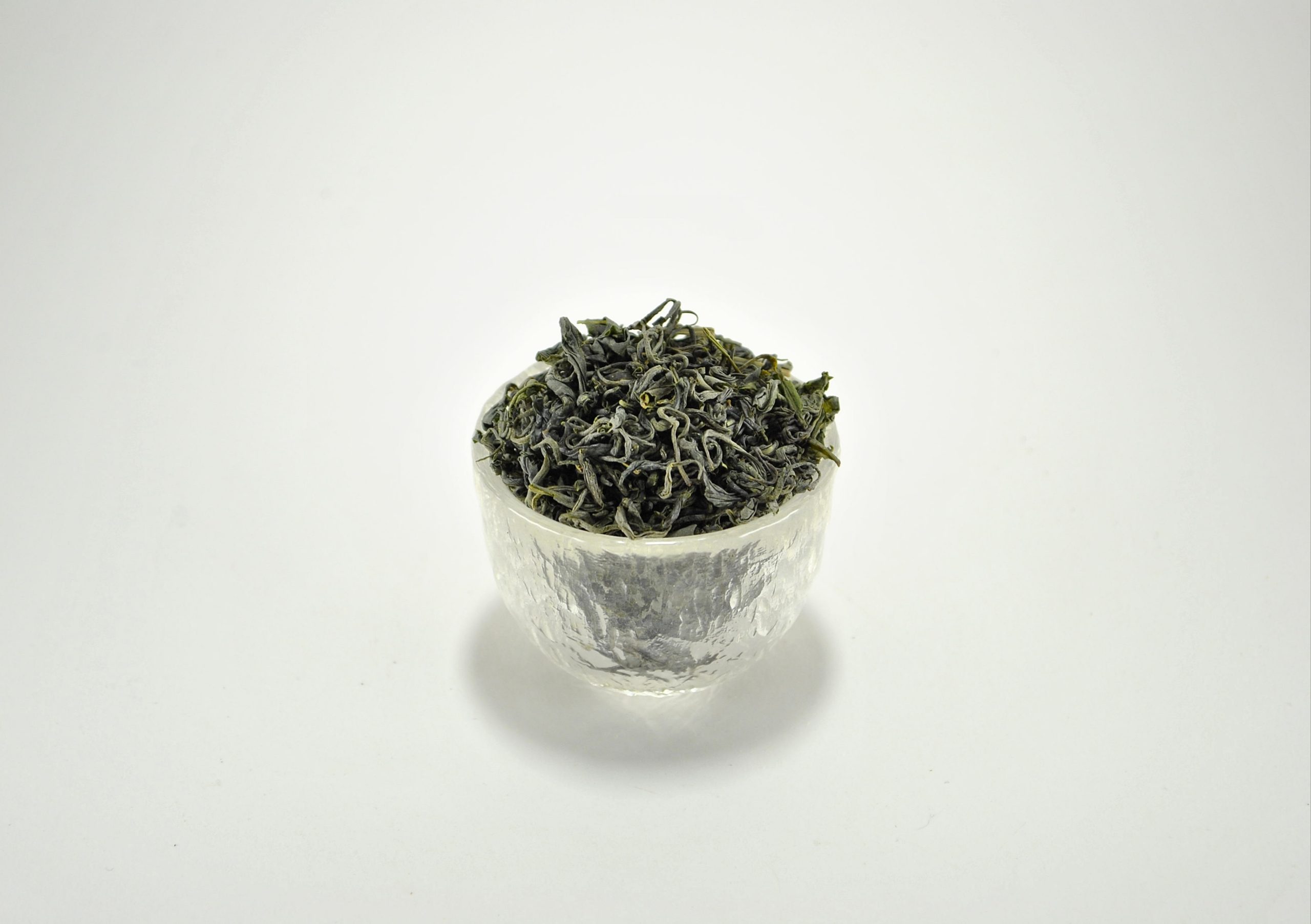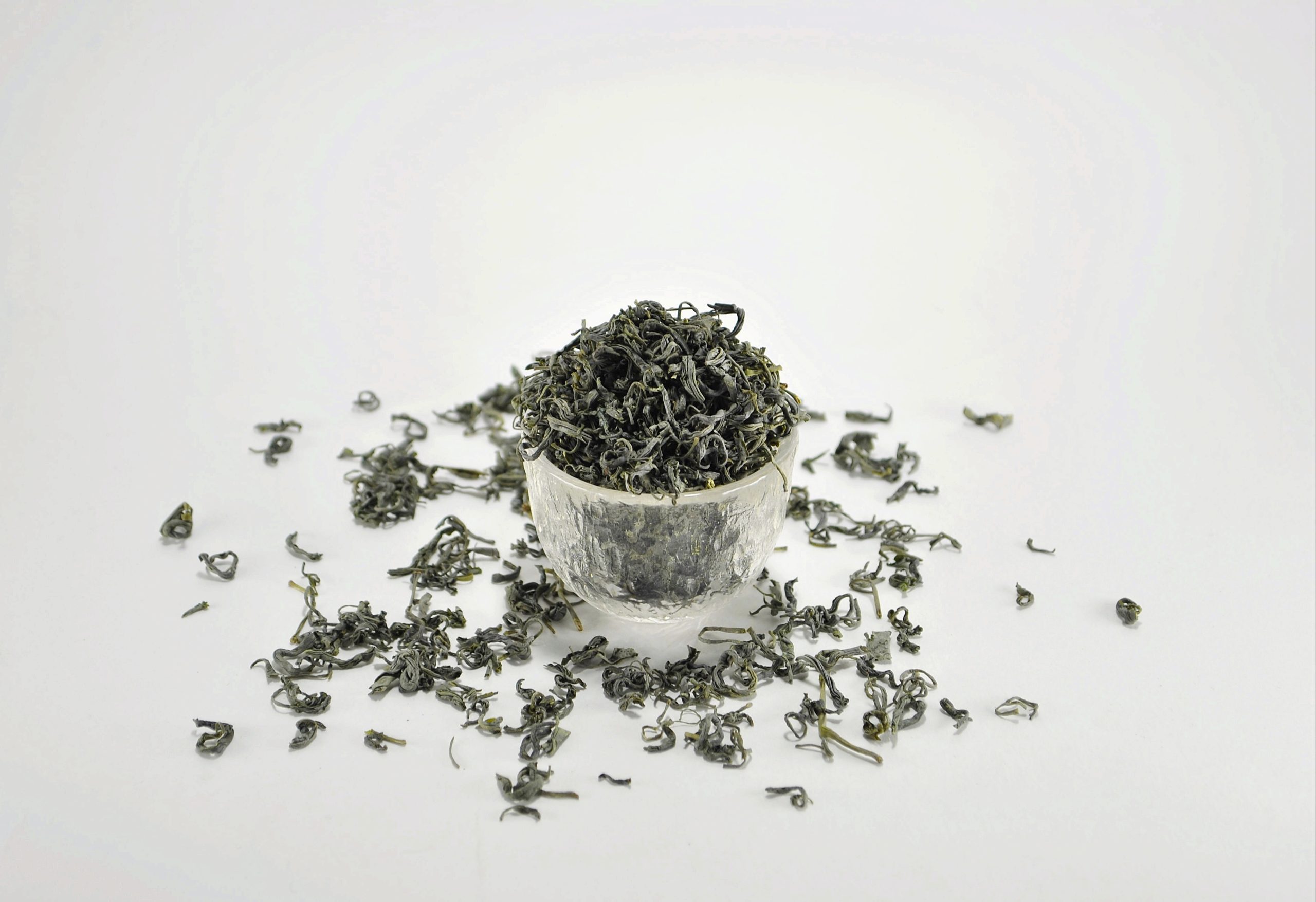 Аккуратные, изящно скрученные листочки с формой «бровей» — тонкие, слегка изогнутые, нежно-зеленого цвета с серебристым отливом. Аромат сухого чая — свежий, с нотами весенней зелени, цветущего миндаля и едва уловимым морским бризом.