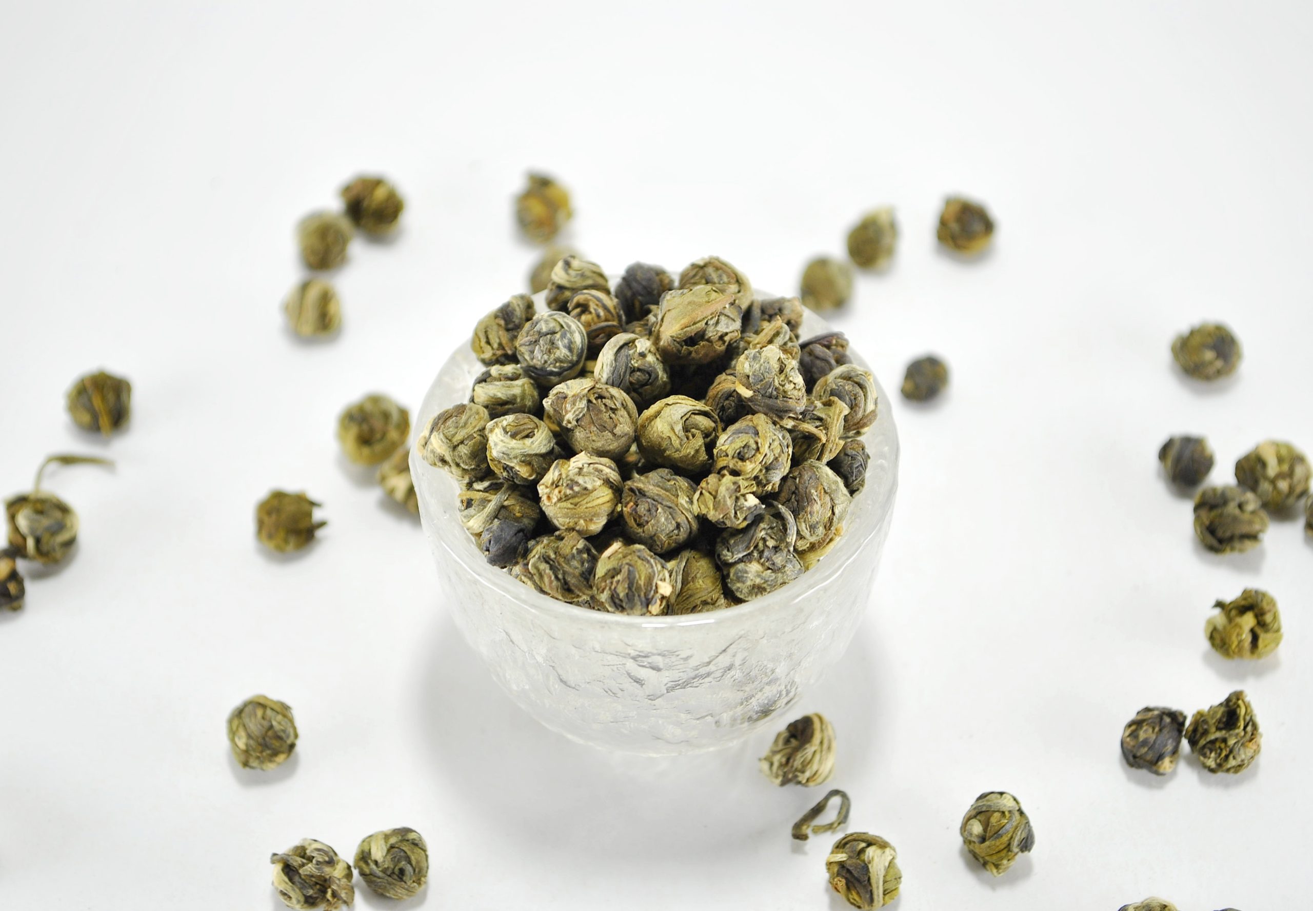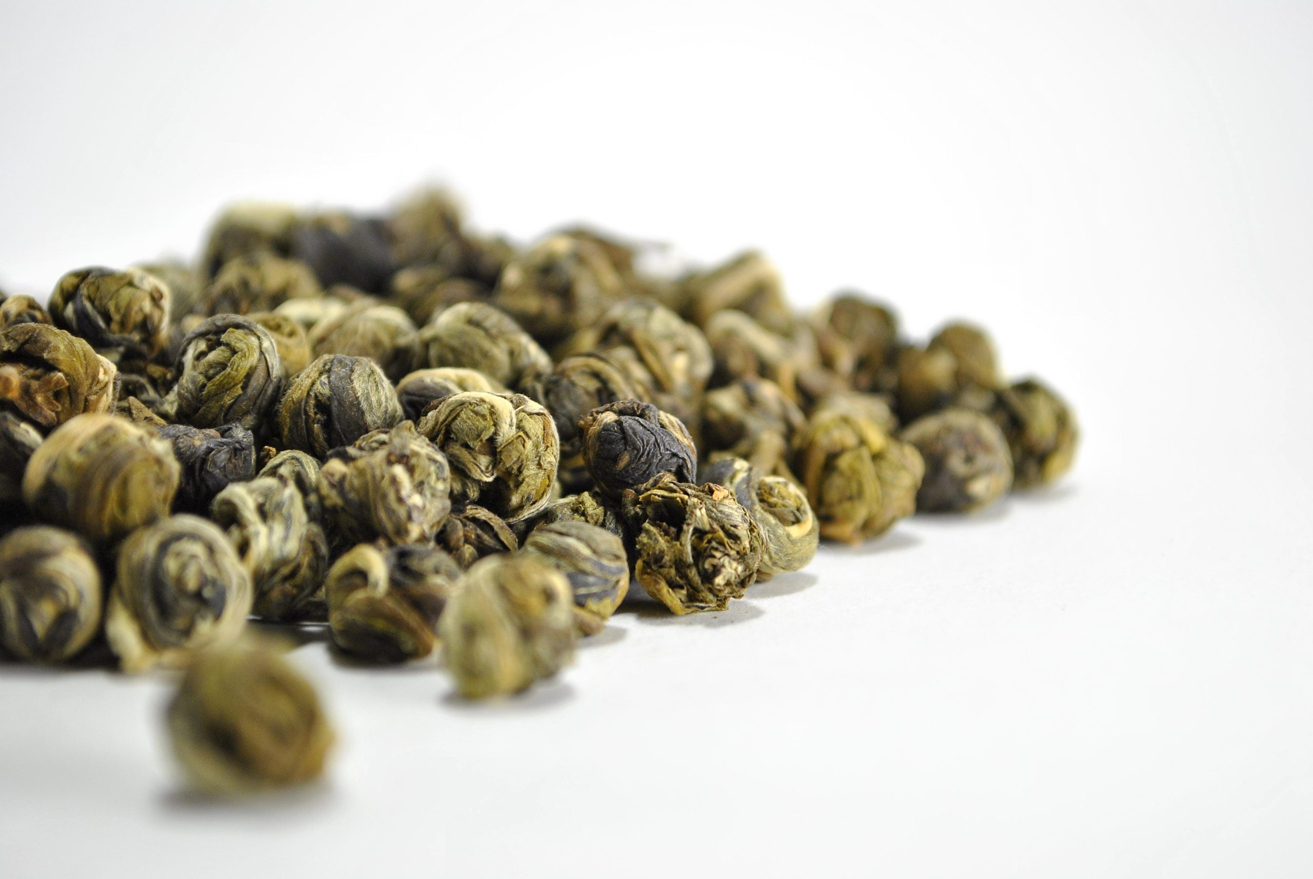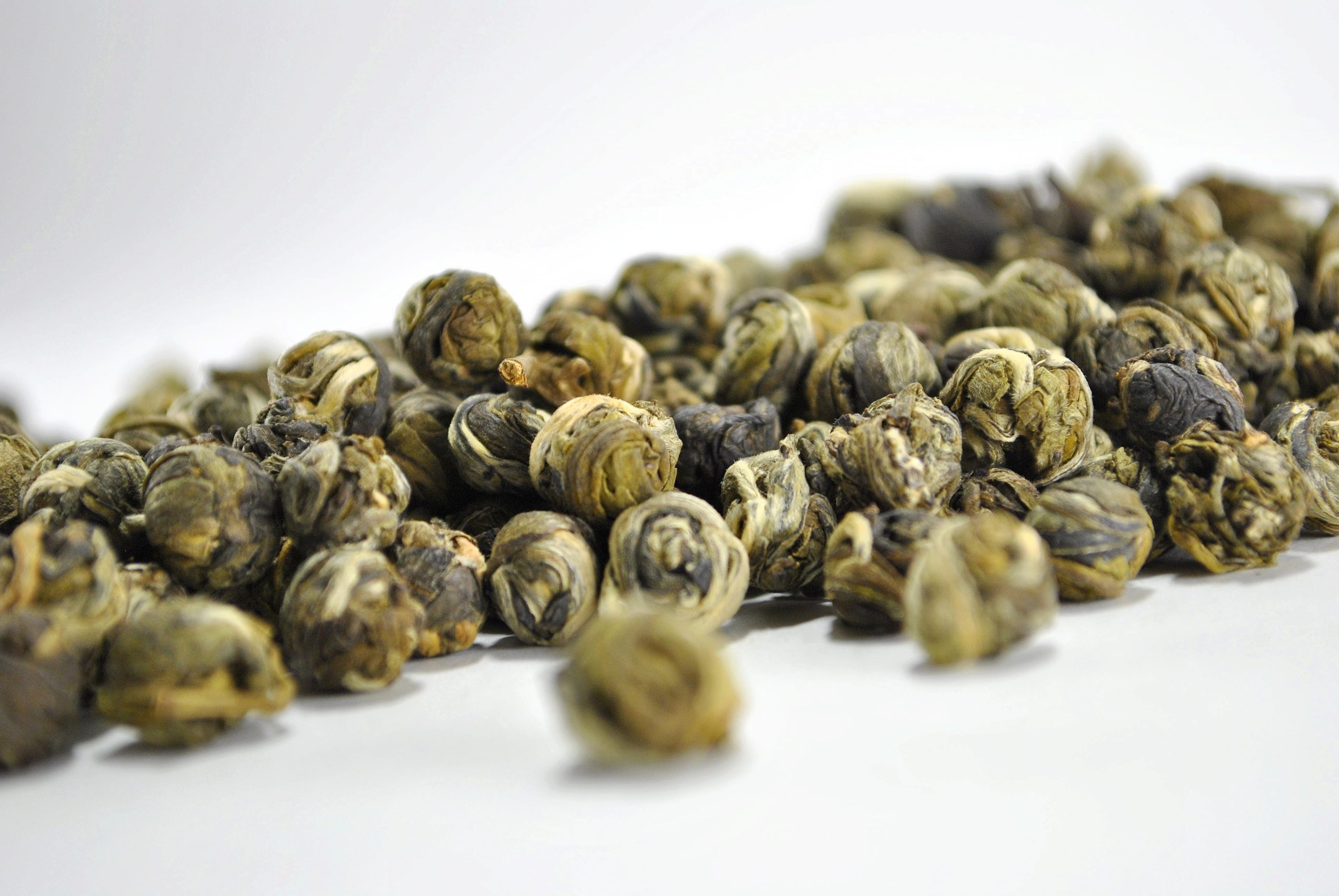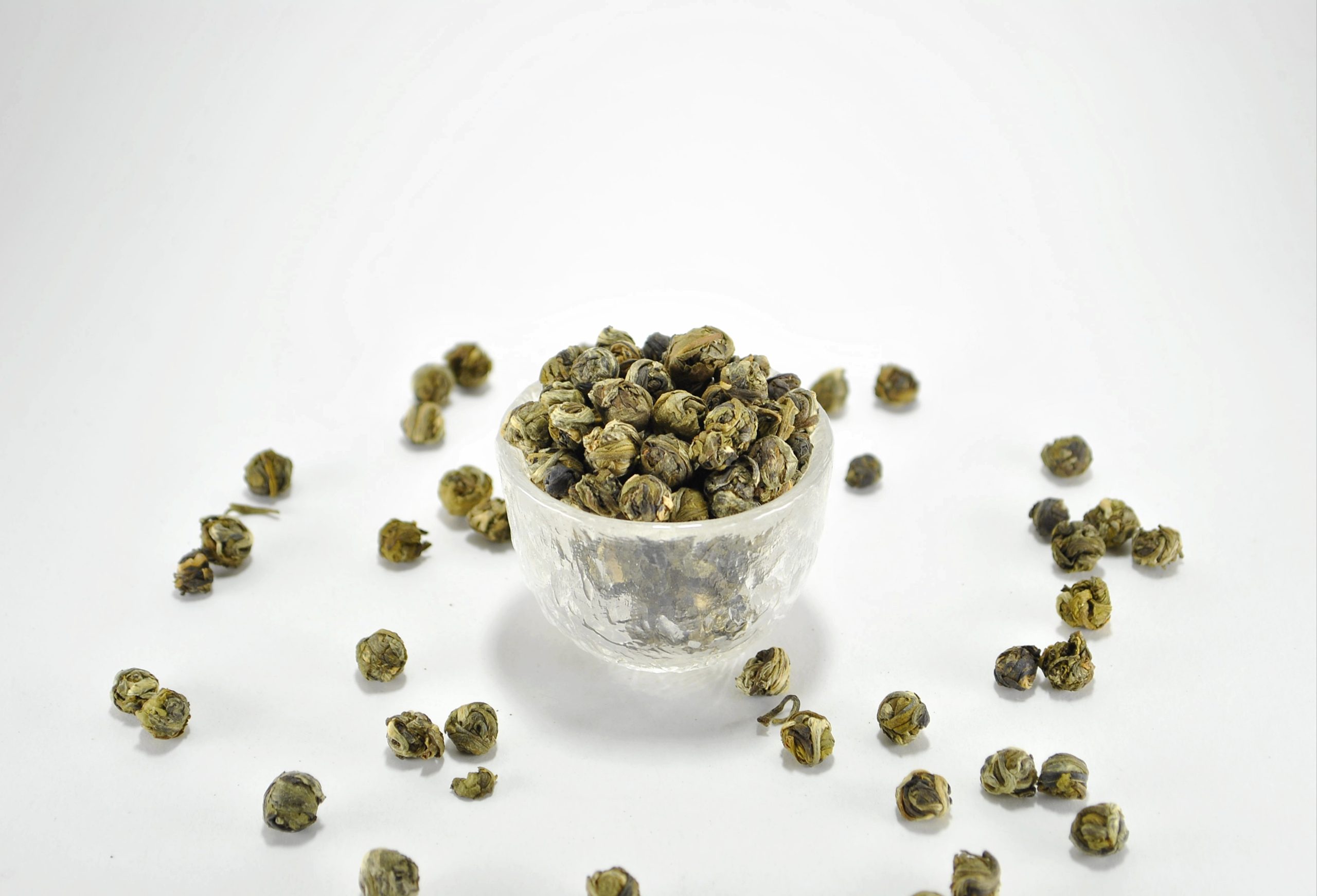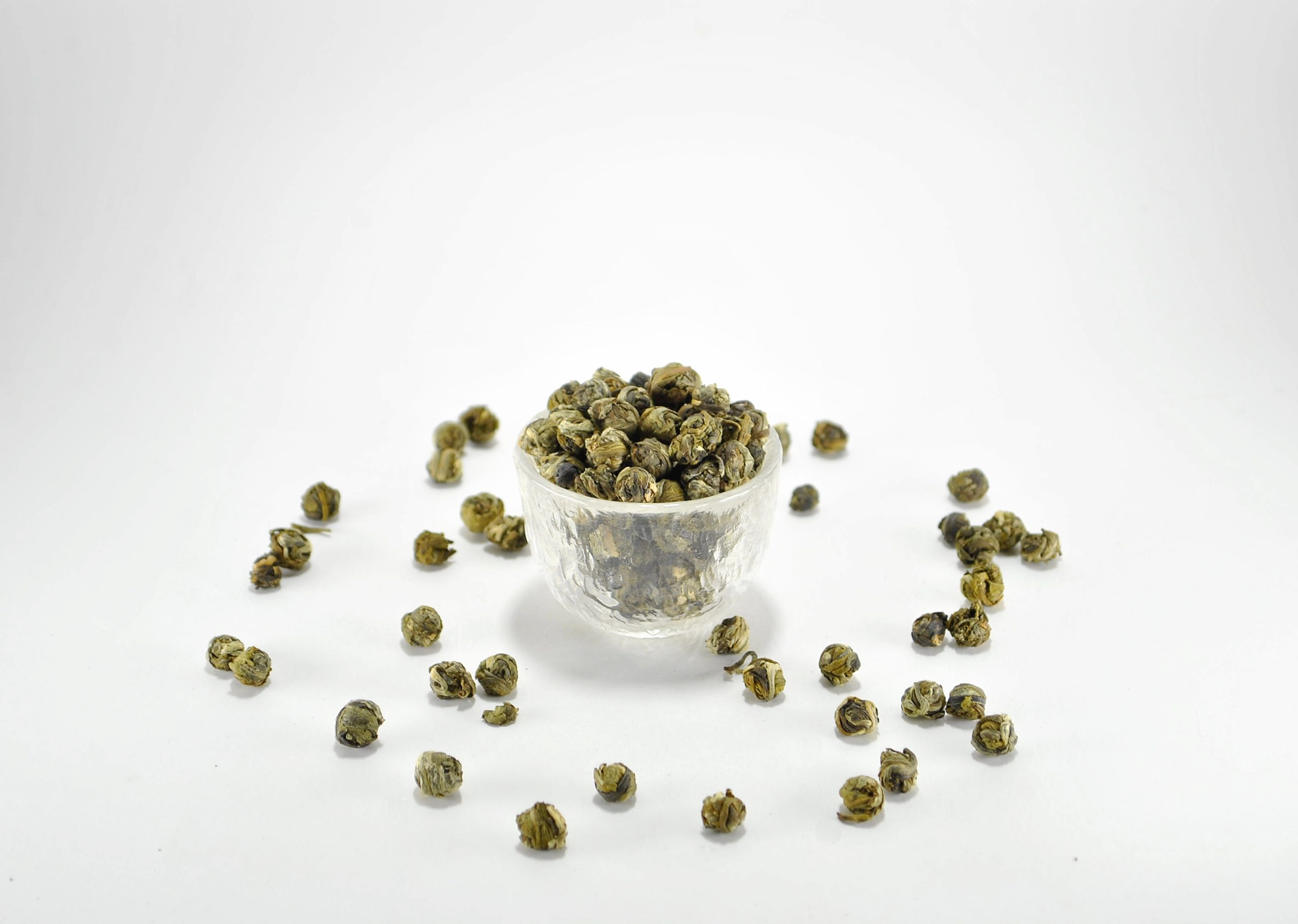 Элитный зелёный чай из провинции Фуцзянь, ручной сбор весны 2023 года. Отборные чайные почки, скрученные вручную в плотные жемчужины и бережно ароматизированные натуральным жасмином по древней технологии.