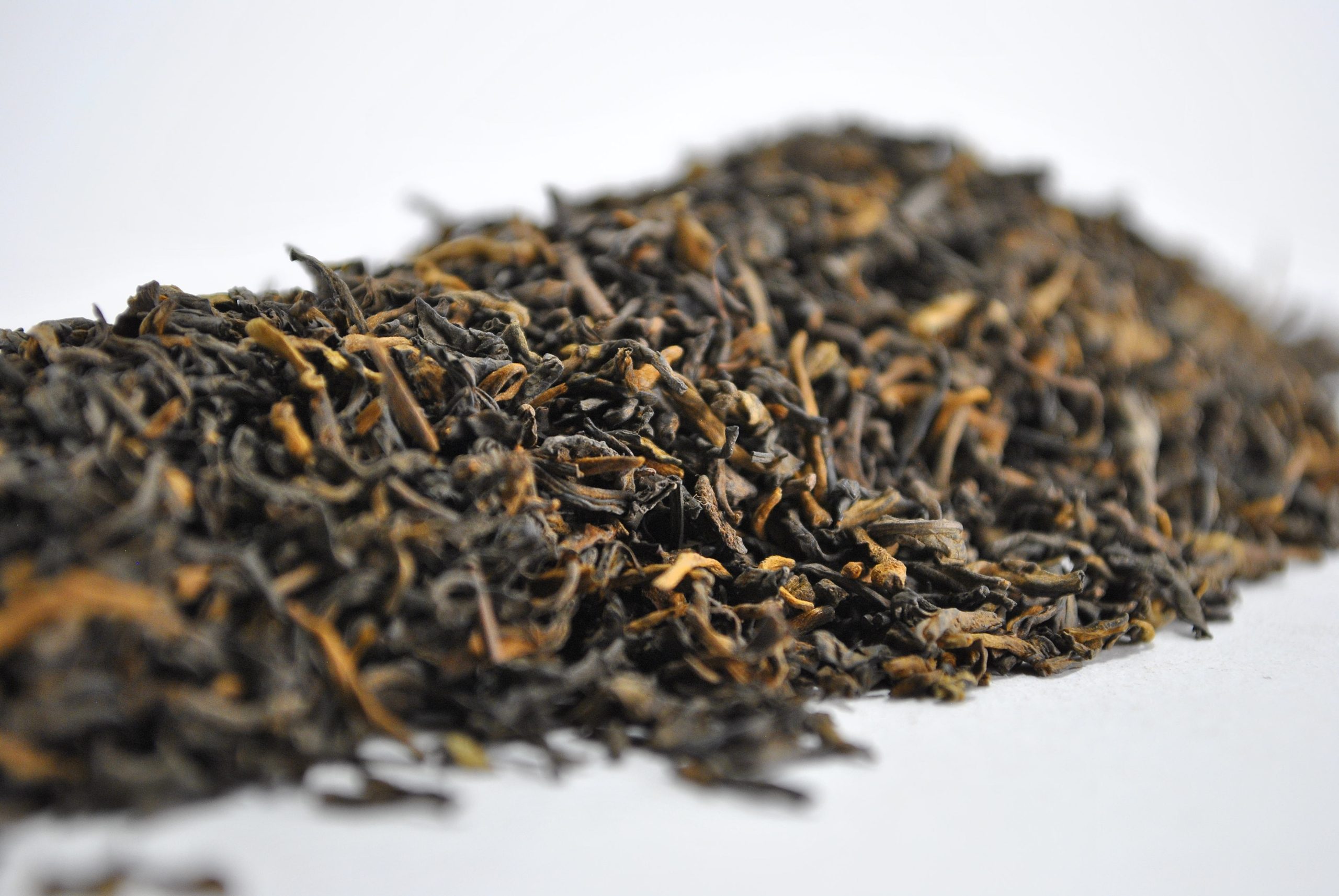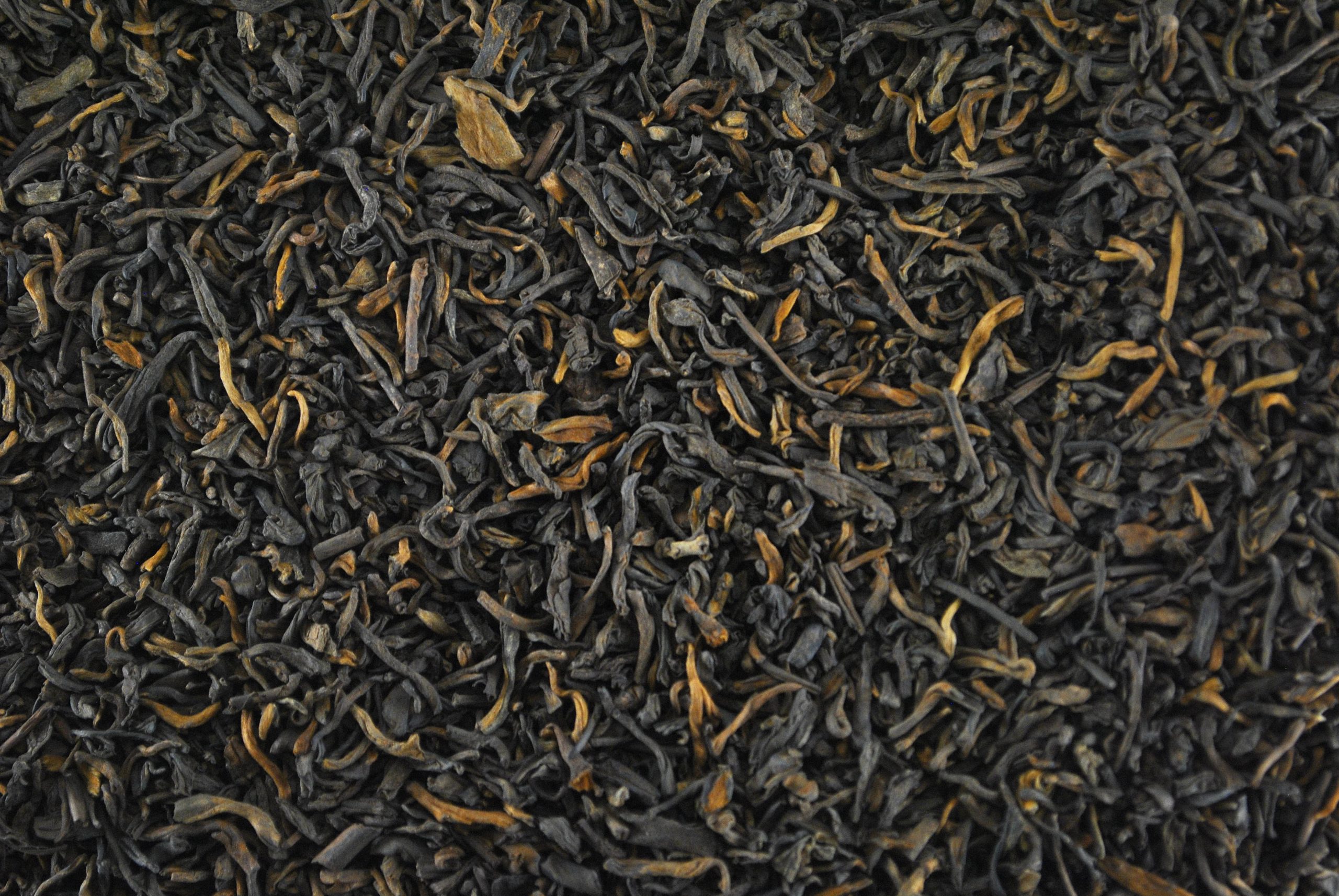 Крупные, плотно спрессованные листья темно-шоколадного цвета с золотистыми типсами. При разламывании заметен равномерный ферментативный срез. Аромат сухого чая — глубокий, с нотами чернослива, темного шоколада и влажного мха.