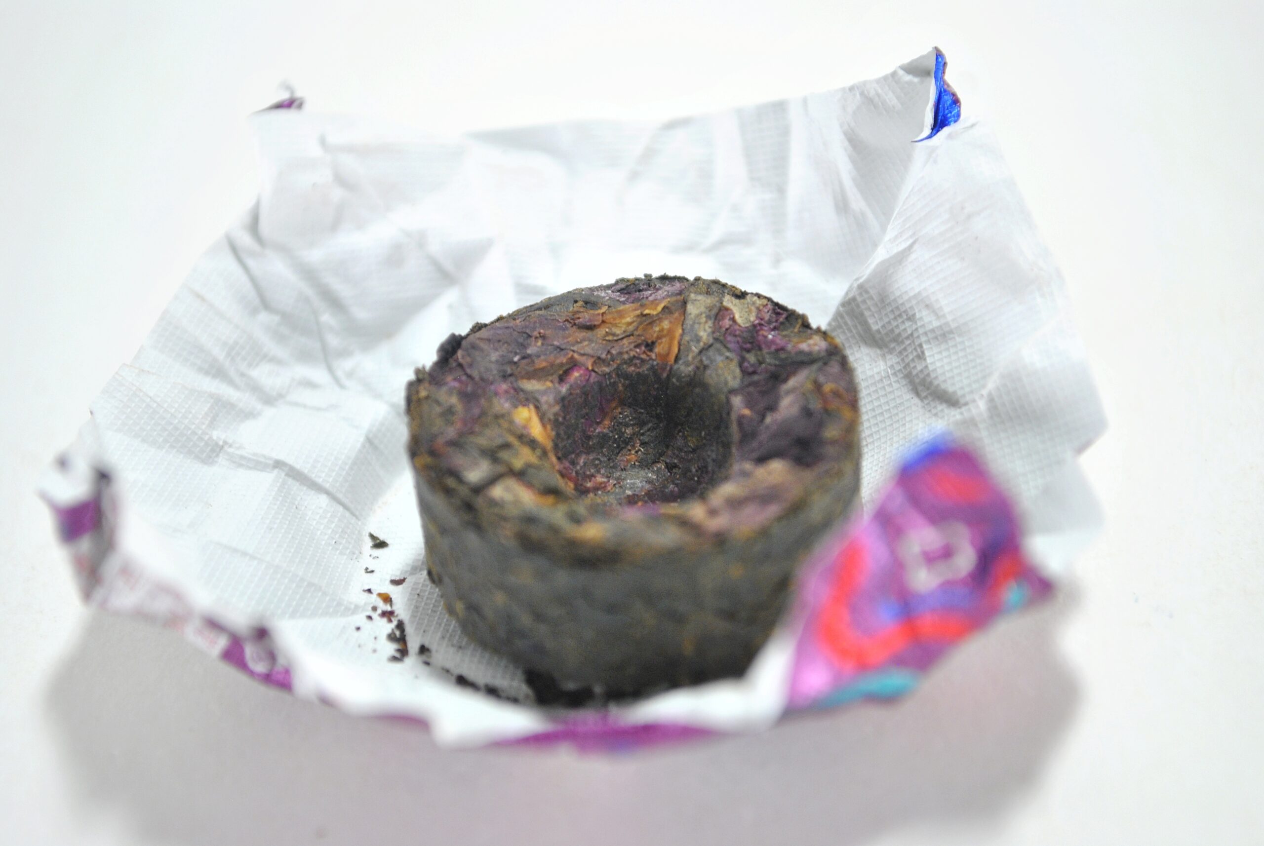 Аккуратные таблетки весом 6 г, где темные чайные листья переплетаются с алыми лепестками роз. Аромат сухого чая — нежный, с балансом бархатных нот шоколада, ореха и свежим цветочным благоуханием розы, напоминающим утренний сад.
